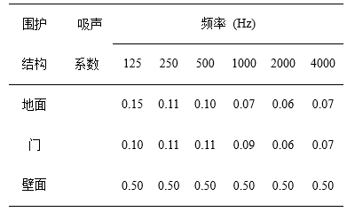 表1. 地面、門及穹頂壁面吸聲系數(shù)